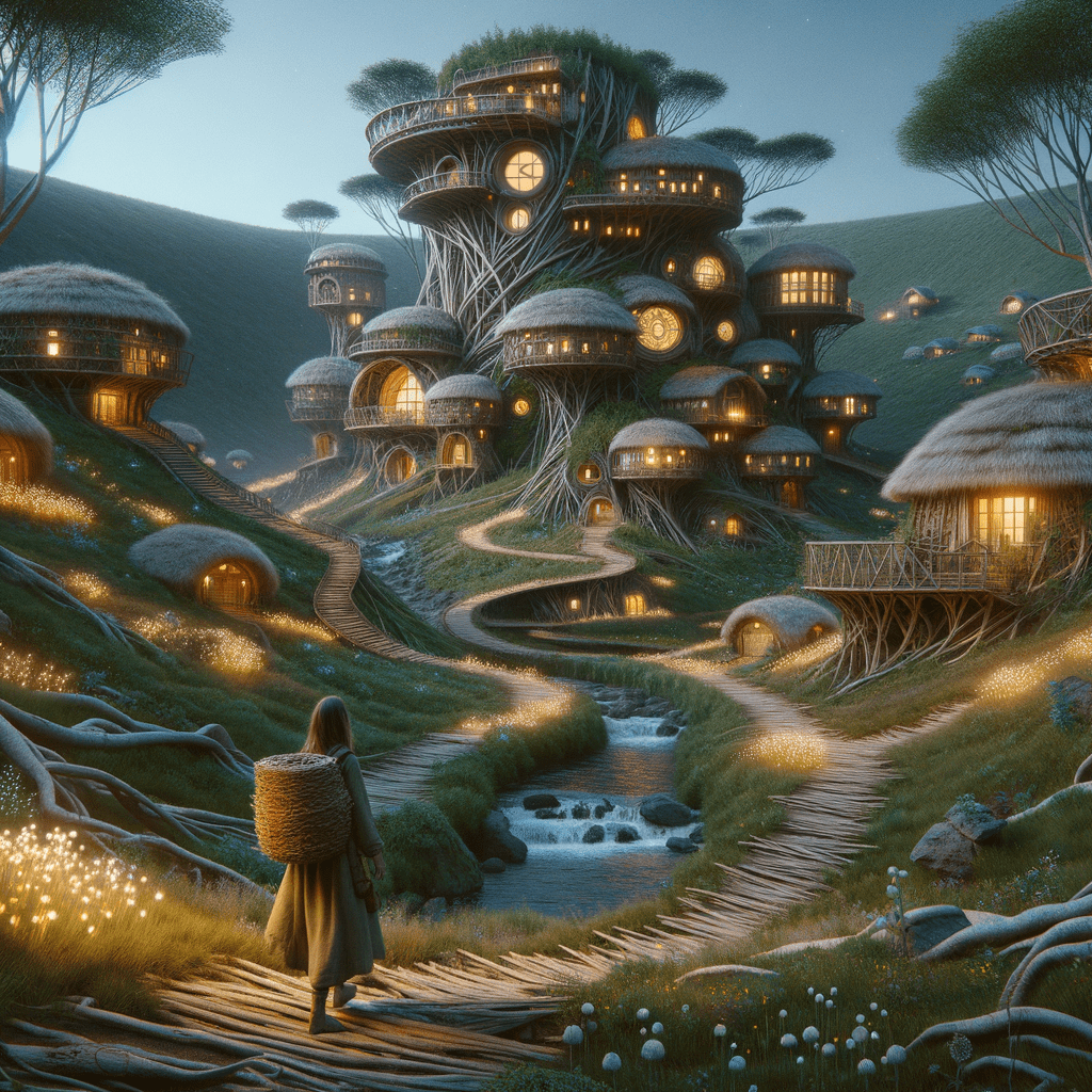 I put on the healing-gourd jam too late, and my body temperature is rising to my throbbing temples. Also, I shouldn’t have teased J when she “squandered” an afternoon packing my sack-gourd with crispy-hexapod bread. Judging by the faraway haze, I need to start rationing. The next three nights are unremarkable, or am I too feverish and famished? Has it actually been four days? I am not sure if I’m delirious when the lights burst into view. Where my village has bushes and vines, the Center flows from towering torch-woods that I’ve only seen in textbooks. Flowing right up to the opposite bank of a creek. I dip an aching toe into the freezing stream and shiver. I pick up pace, to stay ahead of the fever that screams for me to retreat. Then I slip. I hear people yelling, and someone plunging into water…